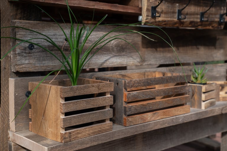 Fine furniture and decor sustainably handcrafted from reclaimed pallet wood.